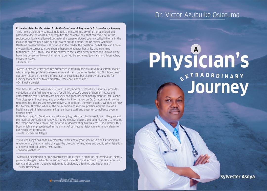 Biographies tell more than the stories of individuals they focus on. For when the story of a man or woman is well told, it speaks to their micro and macro societies as it does to their past, present and future. This is true of A Physician’s Extraordinary Journey, which is the engaging biography of the outgoing Medical Director of the Federal Medical Centre, FMC, Asaba, Delta State, Dr Victor Azubuike Osiatuma.