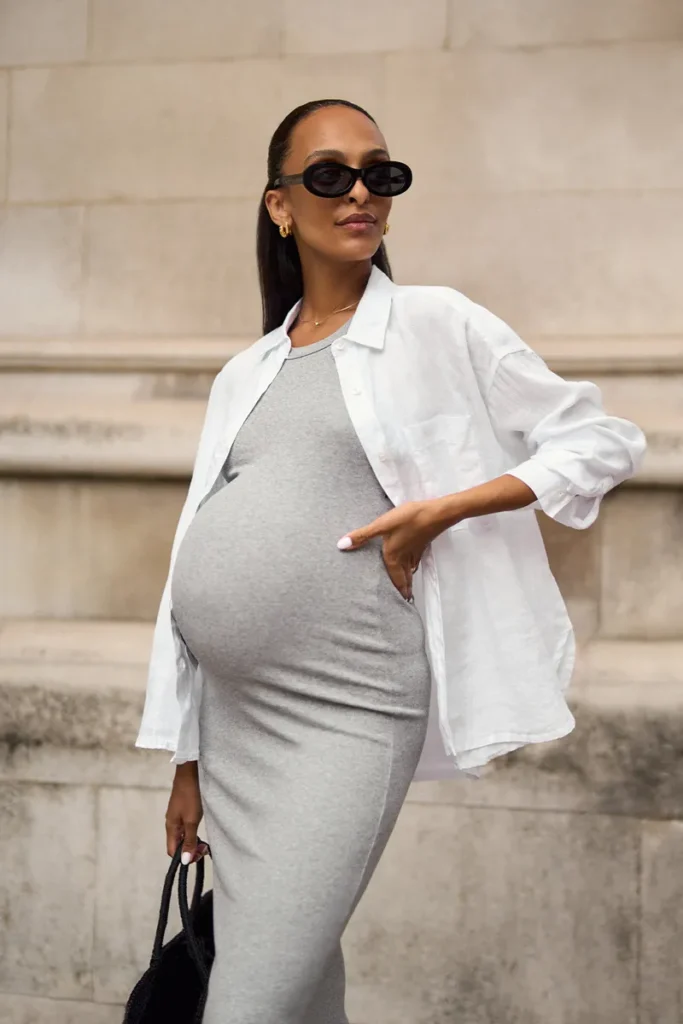 Flowing, flattering, and wonderfully forgiving, the maxi dress is the ultimate maternity travel companion. It’s soft, stretchy fabrics and relaxed cuts allow freedom of movement and accommodate a growing bump without pressure points. Choose breathable fabrics like jersey or bamboo that move with you. Solid jewel tones or subtle prints can transition from sightseeing to dinner effortlessly.