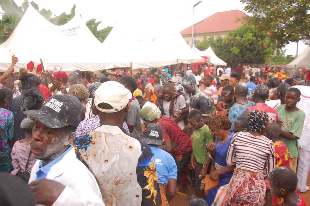 The Ine-Aho, which was the climax of a week long activity, commenced with the Obi, accompanied by the Iyase and other High Chiefs, as well as administrative Chiefs of the kingdom under the guidance of the Chief priest from the Royal Palace, processed to Abuano, the centre of the Community, a highly sacred place, where prayers and sacrifices were offered to God Almighty for his uncommon love and sustenance.