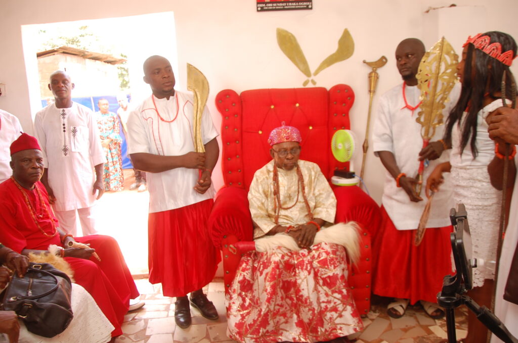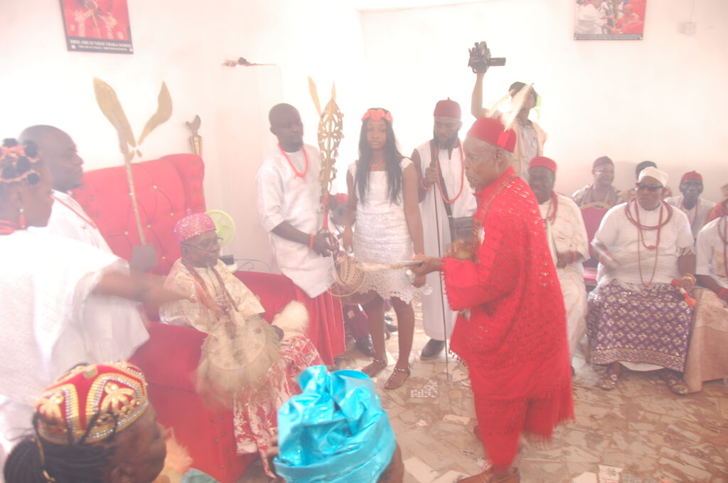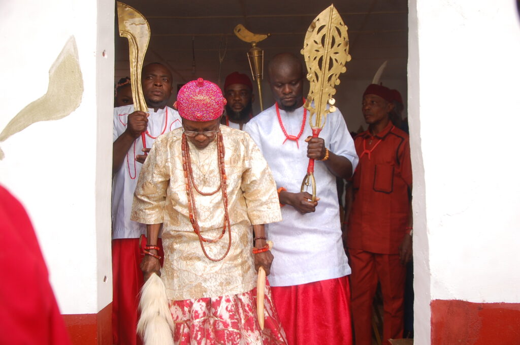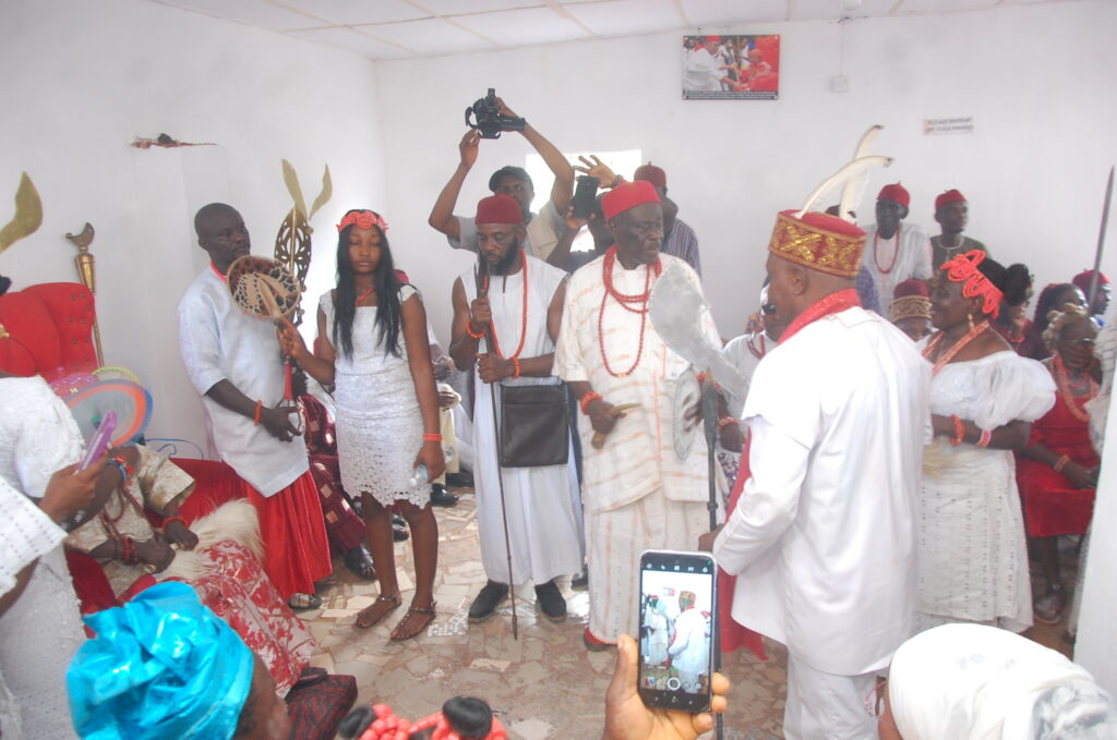 With the conclusion of the traditional handshake by the Onotu Chiefs, His Royal Majesty recessed to the inner royal chamber for about 30 minutes, after which he re-appeared, seated on the throne.