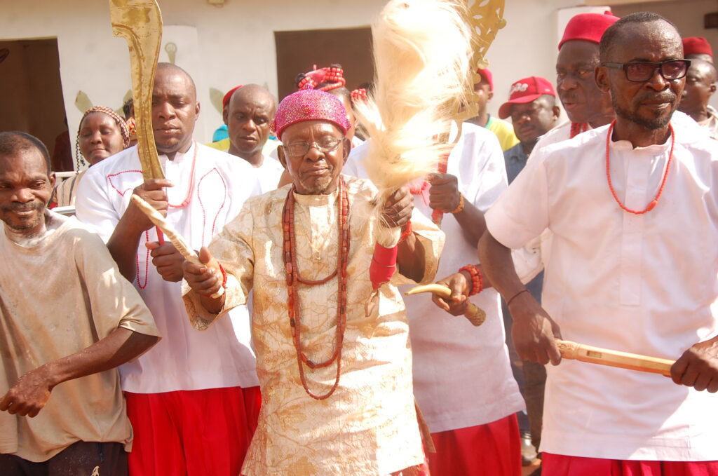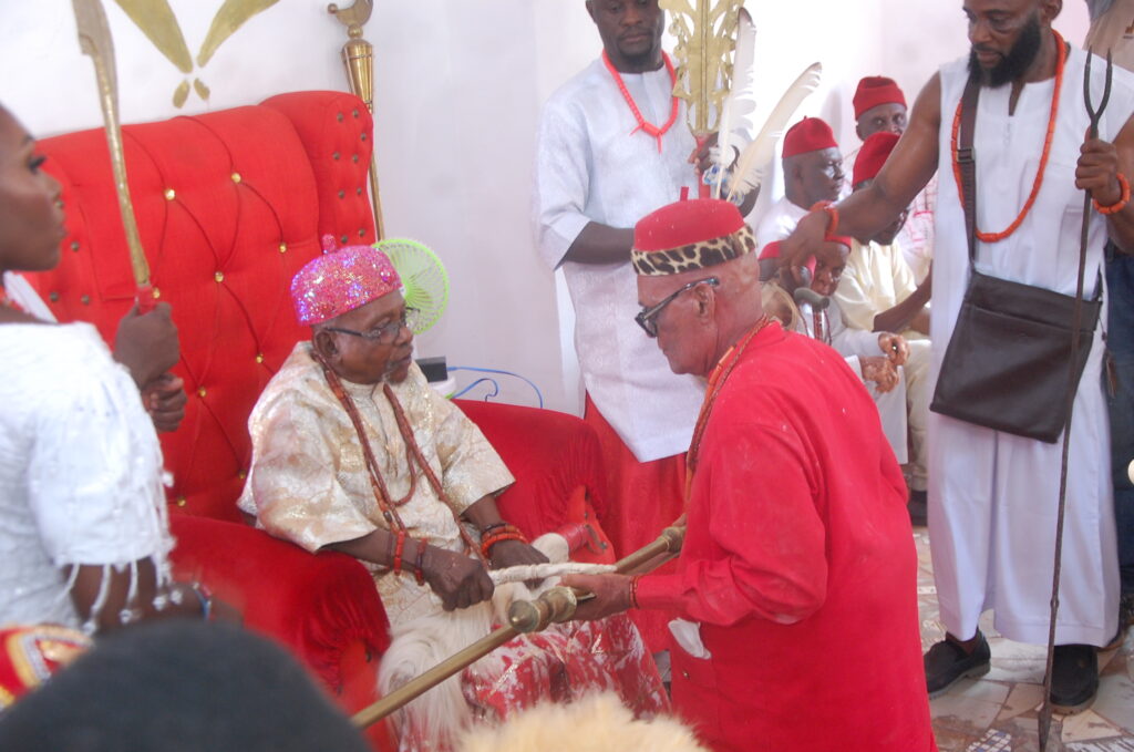 High Chiefs of the community led by Chief Lawrence Njiokwu, the Iyase of Issele-Mkpitime were exceptional as they performed their traditional allegiance to the king in symbolic loyalty to Monarch and the throne.