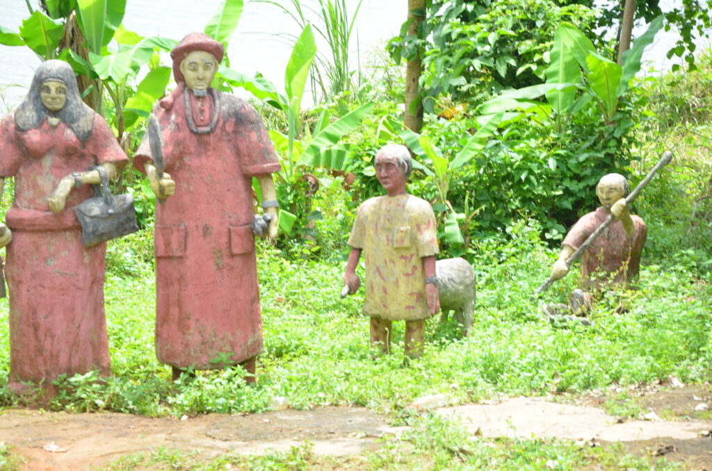 This unusual Chief Priest, who succeeded his father, Dr. Raph Ndidi Obi, a devout traditionalist known for his cultural activities, is always eager to showcase the Agulu Lake Temple. This temple is remarkable because it represents a blend of faith, where traditional beliefs and Christian symbols coexist in harmony. Here, sculptures of Abraham and Isaac, Jesus Christ, the Virgin Mary, and several Christian saints, including animals, are displayed.