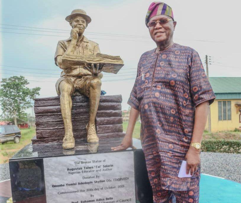 The unveiling of his statue at TASUED is therefore not merely ceremonial. It is a symbolic restoration: an embodiment of the moral fire, intellectual audacity, and civic courage that Solarin represented. Through Shyllon’s philanthropy, Solarin’s image now stands renewed, inviting future generations to contemplate the rigour that shapes character, the resilience that strengthens society, and the generosity that binds one life to many. In affirming Solarin’s legacy, Shyllon has once again affirmed his own: a lifelong project of cultural preservation, intellectual investment, and the generosity of a man determined to ensure that memory, and meaning, endure.